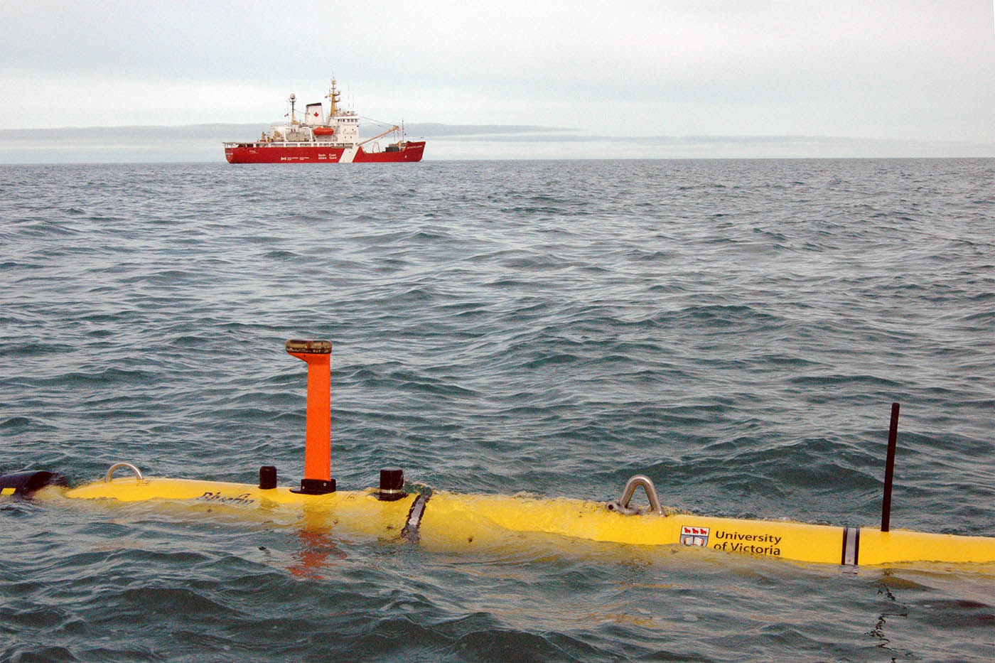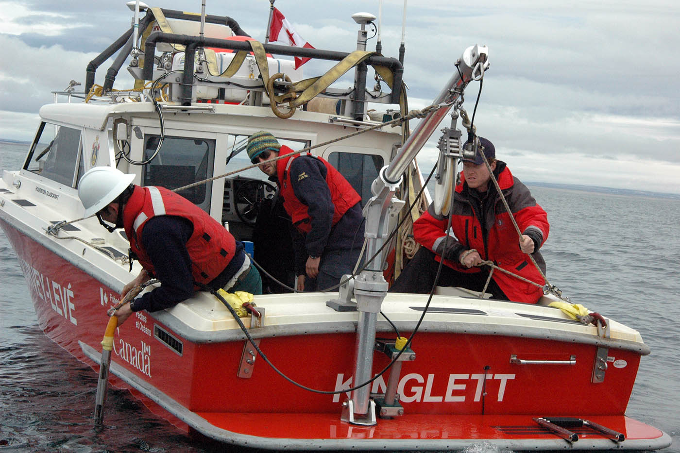 En collaboration avec le ministère de la Défense nationale, la Commission géologique du Canada, Parcs Canada et Eco-Nova, l'hydrographe responsable Jack Wilson a déployé deux embarcations pour relevés hydrographiques à partir d'un brise-glace de la Garde côtière canadienne, le NGCC Sir Wilfrid Laurier, équipés d'un sonar remorqué à faisceau unique et à balayage latéral