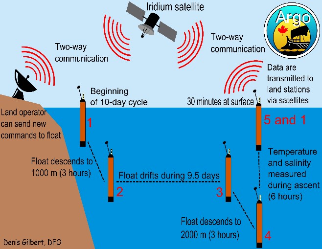 Over 20 countries participate in the project. They all cooperate to deploy, monitor and maintain a fleet of about 3,000 sophisticated profiling floats. The floats drift, sink to pre-programmed depths for specific lengths of time and rise to the surface, taking a variety of important measurements as they rise.